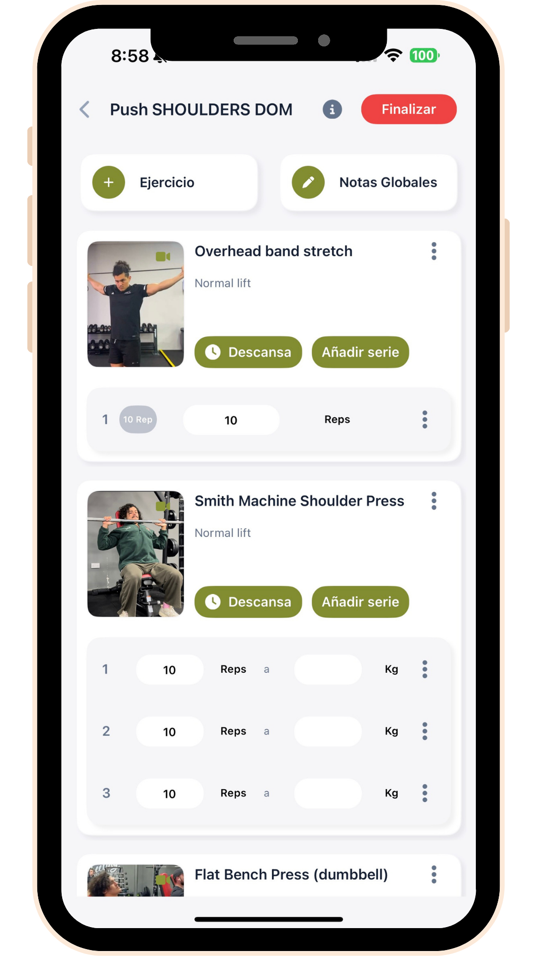 Registra repeticiones, pesos e intensidad sin esfuerzo y obtén insights detallados para optimizar el rendimiento y los resultados de tus clientes.